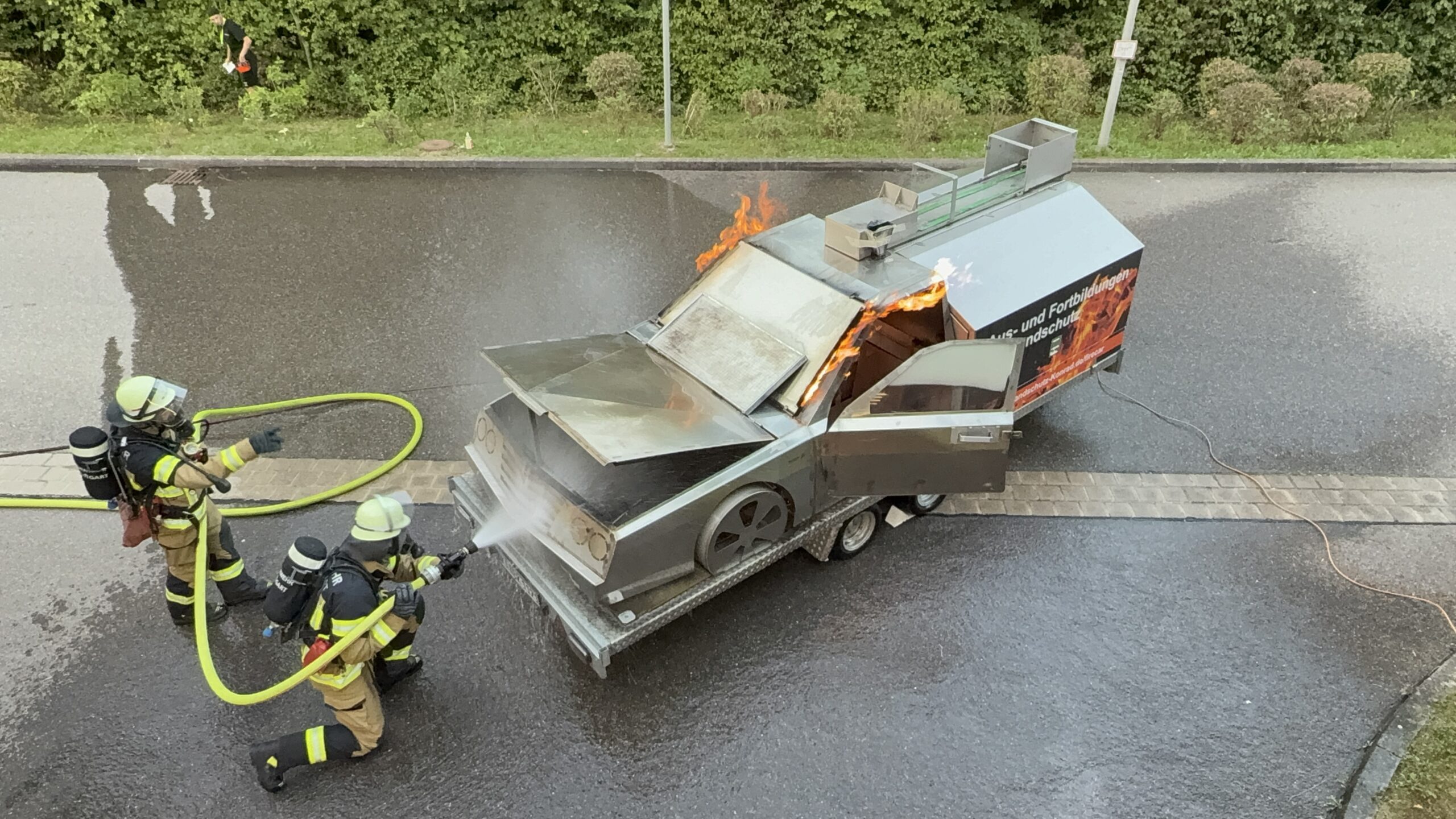 Die sichere Umsetzung realistischer Übungsszenarien erfordert umfassendes theoretisches und praktisches Fachwissen. Dank langjähriger Einsatzerfahrung unserer Mitarbeitenden bei Berufsfeuerwehren können Übungen für Rettungs- und Einsatzkräfte besonders praxisnah, realistisch und dennoch vollständig beherrschbar gestaltet werden.